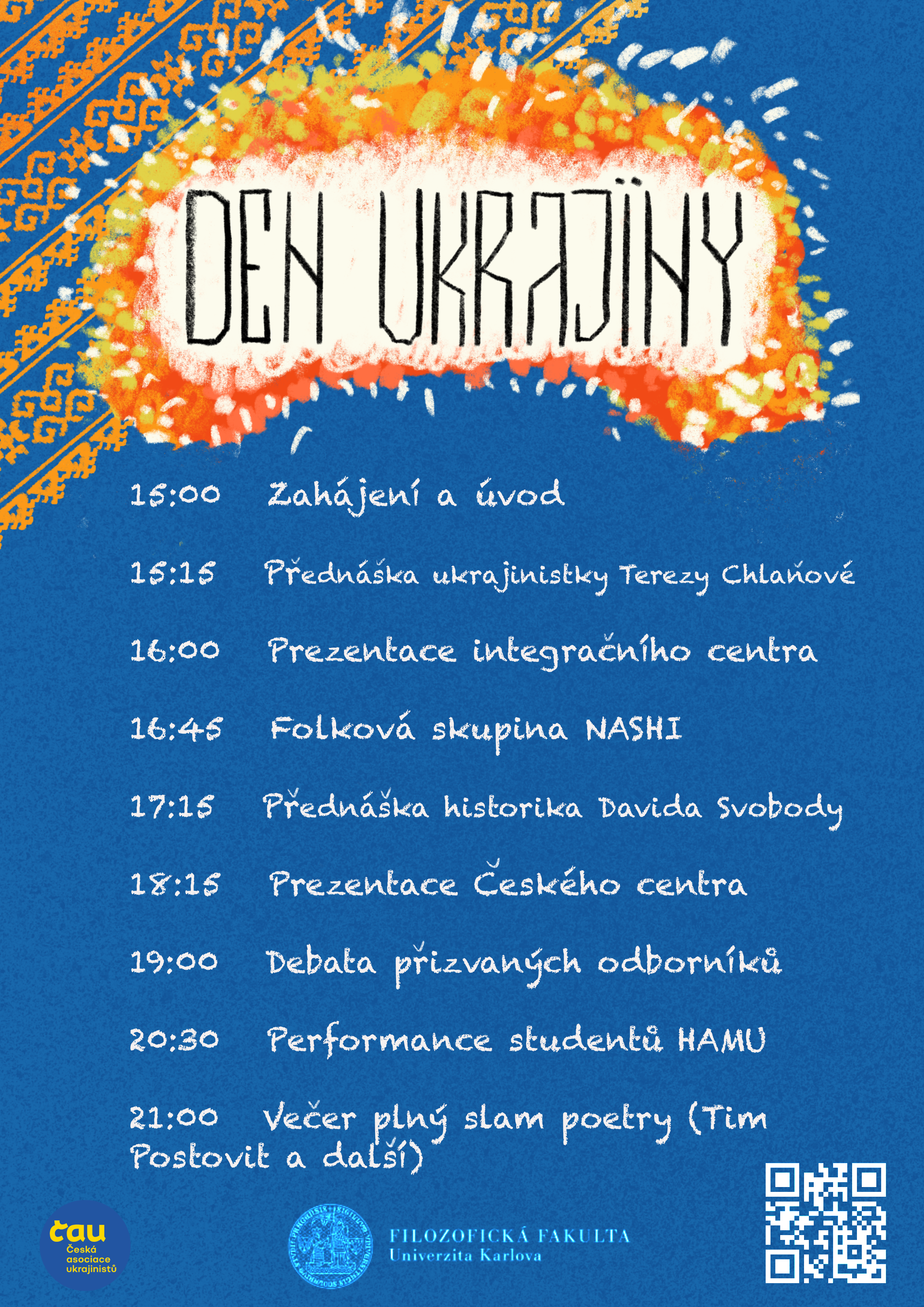 Ústavu východoevropských studií FF UK a Česká asociace ukrajinistů vás zve na akci Den Ukrajiny. Akce se bude konat 13.4.2022 v areálu Kampusu Hybernská (Hybernská 4, v docházkové vzdálenosti od hlavního nádraží a Náměstí Republiky).